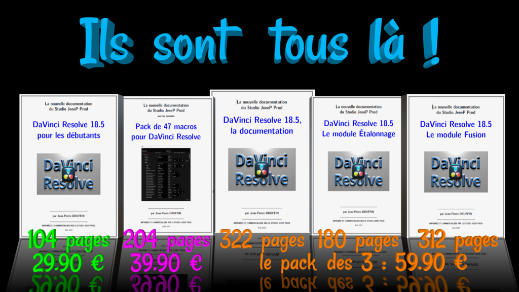 DaVinci Resolve 18.5, la documentation technique : livre de 322 pages avec 240 fichiers exemples.