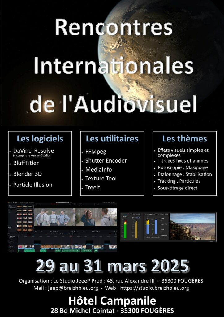 Au cours de ces 3 jours, nous ferons le point sur les dernières techniques audiovisuelles au travers de 4 logiciels, plusieurs utilitaires incontournables sur des thèmes porteurs. Mais, il n’y aura aucun tabou puisque chaque jour, 1 heure sera consacrée à des questions du type « Comment faire telle chose ? » afin que vous repartiez le 3ème jour avec un panier de connaissances bien rempli.