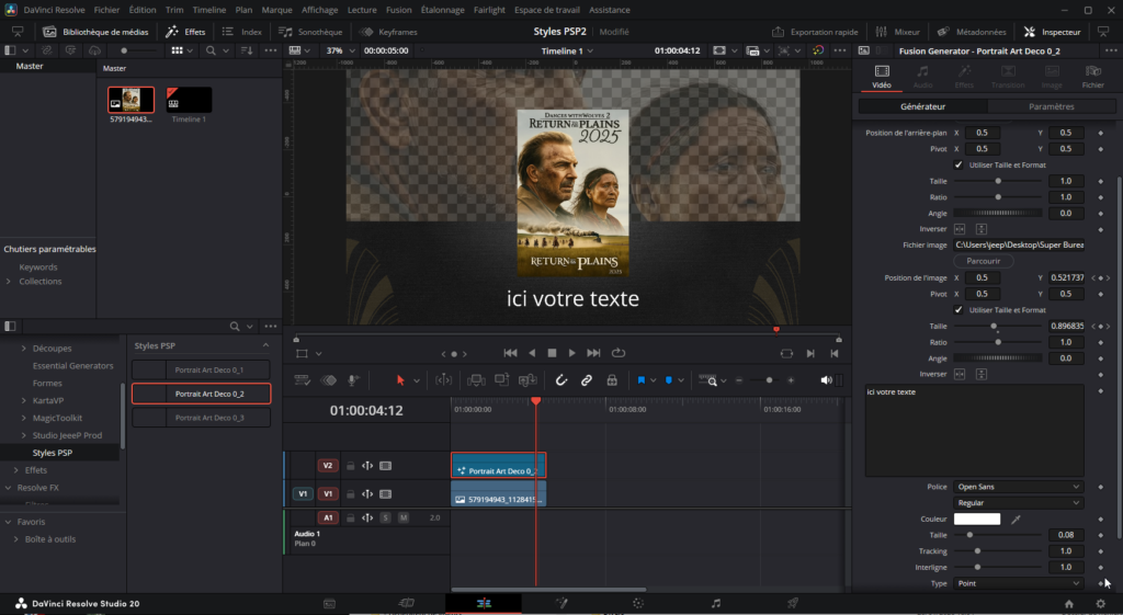 Ci-dessous, voici comment se présente un style issu du pack Portraits de Photodex une fois intégré dans DaVinci Resolve.