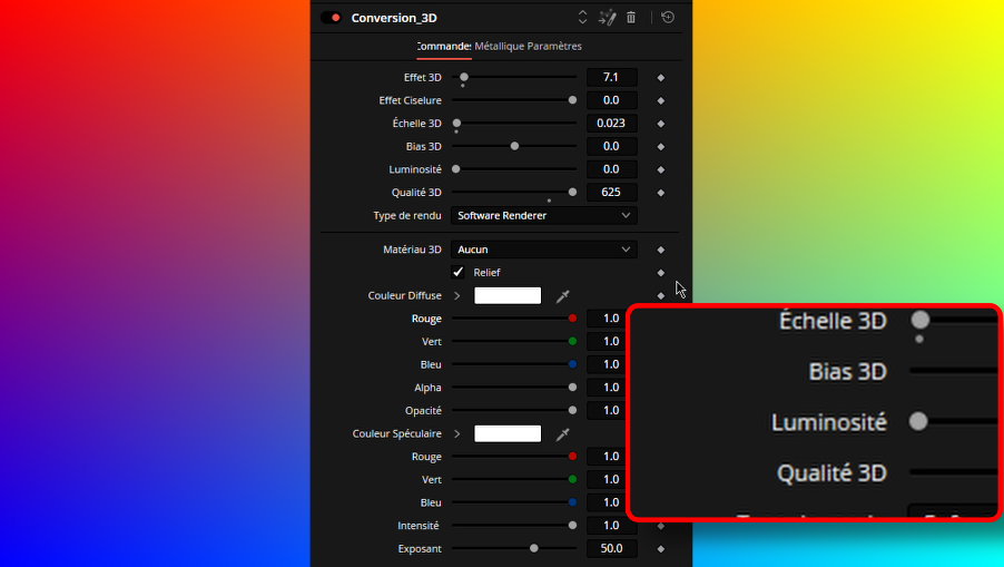 Spot : crée une forme lumineuse rectangulaire ou elliptique qui pourra être animée. Elle pourra être judicieusement utilisée pour des thèmes documentaires afin de surligner des éléments clés.
