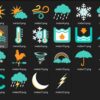 Un pack de 11 icônes météorologiques animées en 3840 x 2160 représentant différentes situations de temps. Un exemple complet est inclus pour vous aider à créer d’autres situations. Une occasion pour insérer un bloc météo sur un site Web ou un blog.