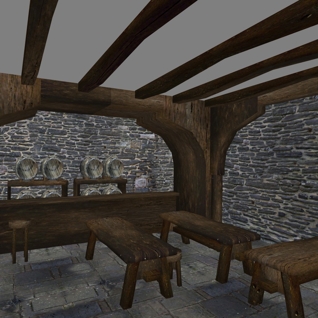 Auberge ancienne en 3D (Formats FBX, U3D et DirectX) exploitables dans BluffTitler et DaVinci Resolve.