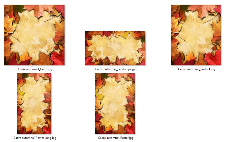 Ensemble de 5 canevas sur le thème « Automne-Hiver » dans les formats JPG suivants :