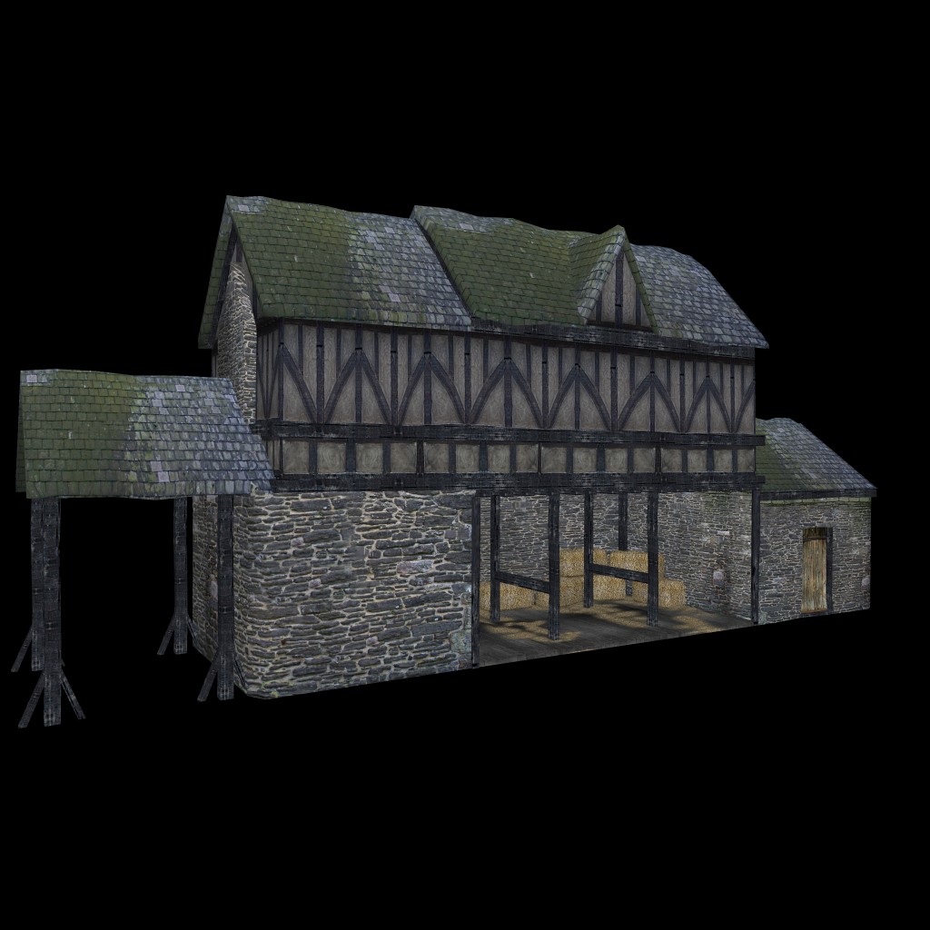 Etable ancienne en 3D (Formats FBX, U3D et DirectX) exploitables dans BluffTitler et DaVinci Resolve.