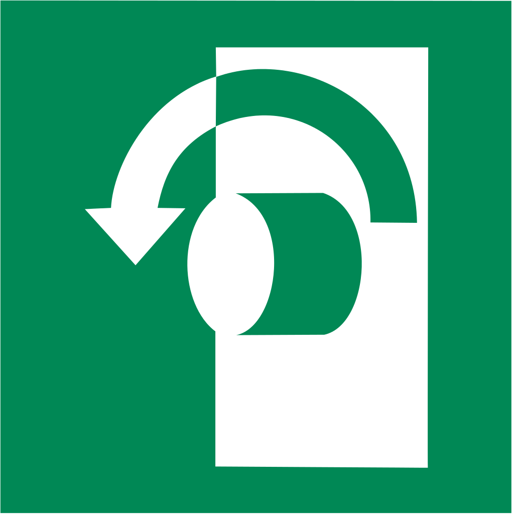 Panneau sécurité (ISO-7010) E018 « Tourner en sens inverse des aiguilles d’une montre« .