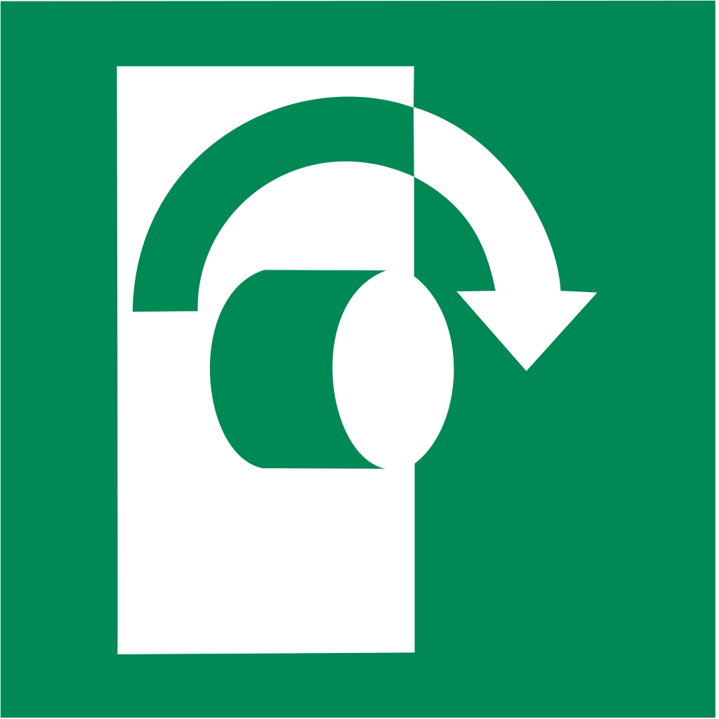 Panneau sécurité (ISO-7010) E019 « Tourner dans le sens des aiguilles d’une montre« .