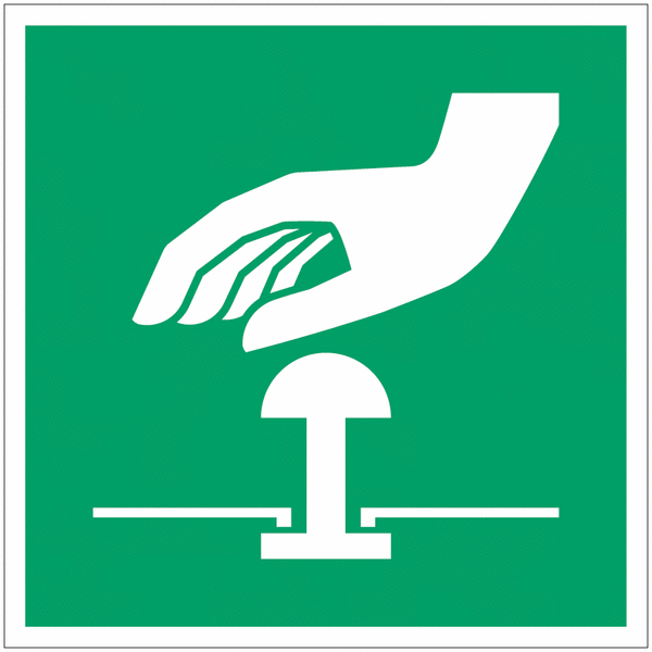 Panneau sécurité (ISO-7010) E020 « Bouton d’arrêt d’urgence« .