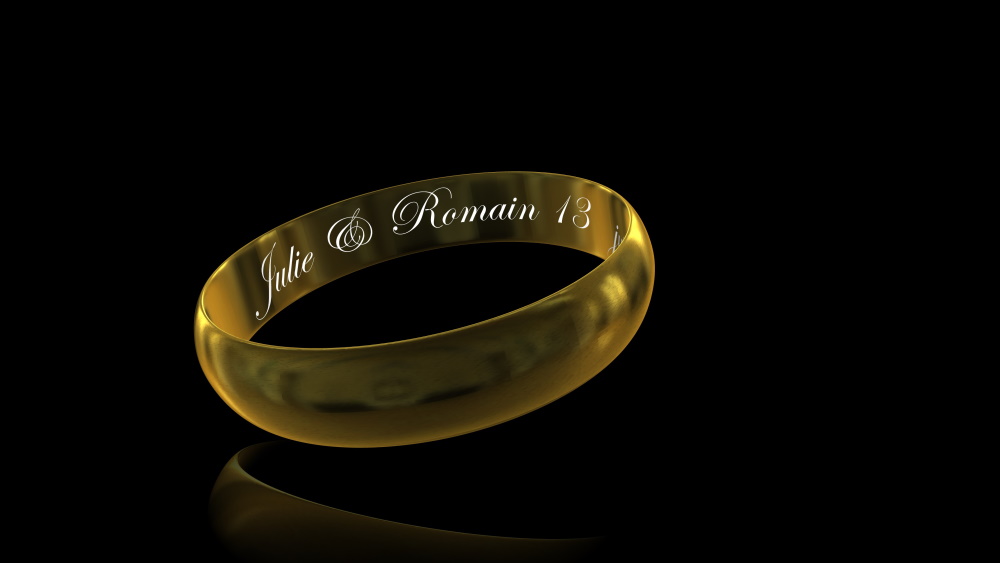 Animation avec une alliance gravée des prénoms des mariés et de la date de la cérémonie.